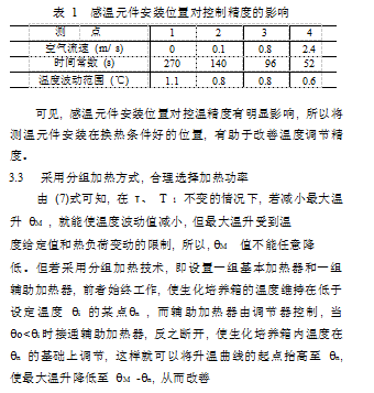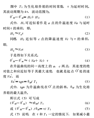 考慮各種影響因素, 在調節器的控制下, 當加熱器開始加熱時, 培養箱內的溫度不是從 O 點是開始 , 而是從大溫升 θM , 即減小加熱功率, 就能使溫度波動幅值 (θ′M -θ′m) 減小, 提高調節精度, 而 θM 與加熱功率正相關。